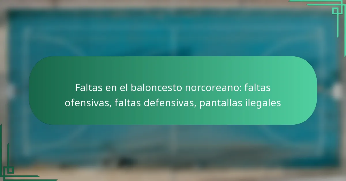 En el baloncesto norcoreano, las faltas se clasifican en tres categorías principales: faltas ofensivas, faltas defensivas y pantallas ilegales. Cada tipo de falta tiene reglas distintas que impactan el juego, influyendo en las estrategias del equipo y en las decisiones de los árbitros. Comprender estas faltas es esencial para que los jugadores y entrenadores naveguen eficazmente las dinámicas únicas del juego.