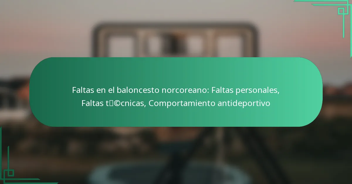 Las faltas personales en el baloncesto norcoreano son violaciones cometidas por los jugadores que implican contacto físico ilegal con los oponentes. Estas faltas pueden interrumpir el flujo del juego y llevar a sanciones, impactando el resultado general de los partidos.