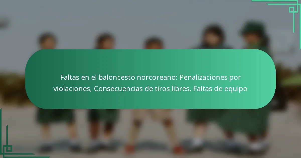 En el baloncesto norcoreano, las faltas se clasifican en tipos personales y técnicas, cada una afectando el juego a través de sanciones específicas y oportunidades de tiros libres. Comprender las implicaciones de las sanciones por violaciones es crucial para jugadores y entrenadores, ya que las faltas personales, técnicas y de equipo pueden alterar la estrategia y el flujo del juego. Las consecuencias de los tiros libres surgen de las faltas, ofreciendo al equipo contrario la oportunidad de anotar sin interferencias, con regulaciones únicas que pueden aplicarse en este contexto.