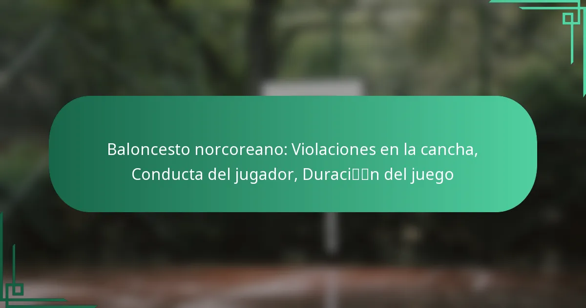 El baloncesto norcoreano presenta violaciones específicas en la cancha que interrumpen el juego y conducen a sanciones, destacando la importancia de adherirse a las reglas establecidas. La conducta de los jugadores está fuertemente regulada, enfatizando la disciplina y el respeto en línea con los valores ideológicos del país. Los partidos están estructurados para durar 40 minutos, divididos en cuatro cuartos de 10 minutos, con reglas de tiempo extra únicas que difieren de los estándares internacionales.