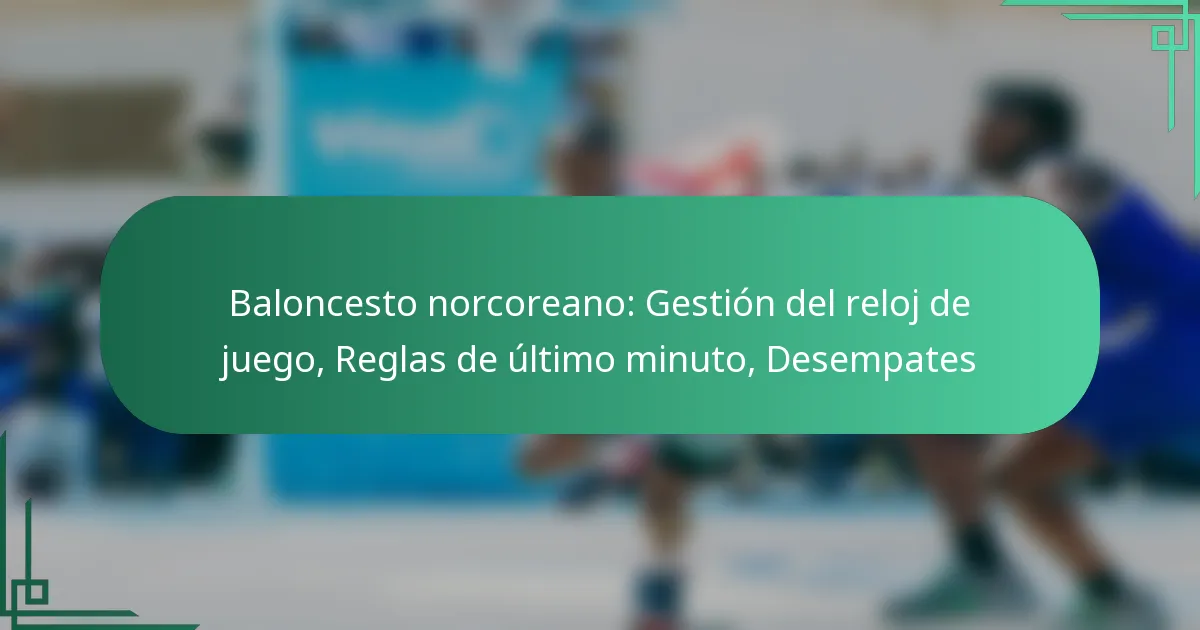 En los últimos minutos de un juego de baloncesto norcoreano, reglas específicas rigen la gestión del reloj de juego, faltas y tiempos muertos que pueden impactar significativamente el resultado. Comprender estas regulaciones es crucial para los equipos que buscan asegurar una victoria en situaciones de alta presión.