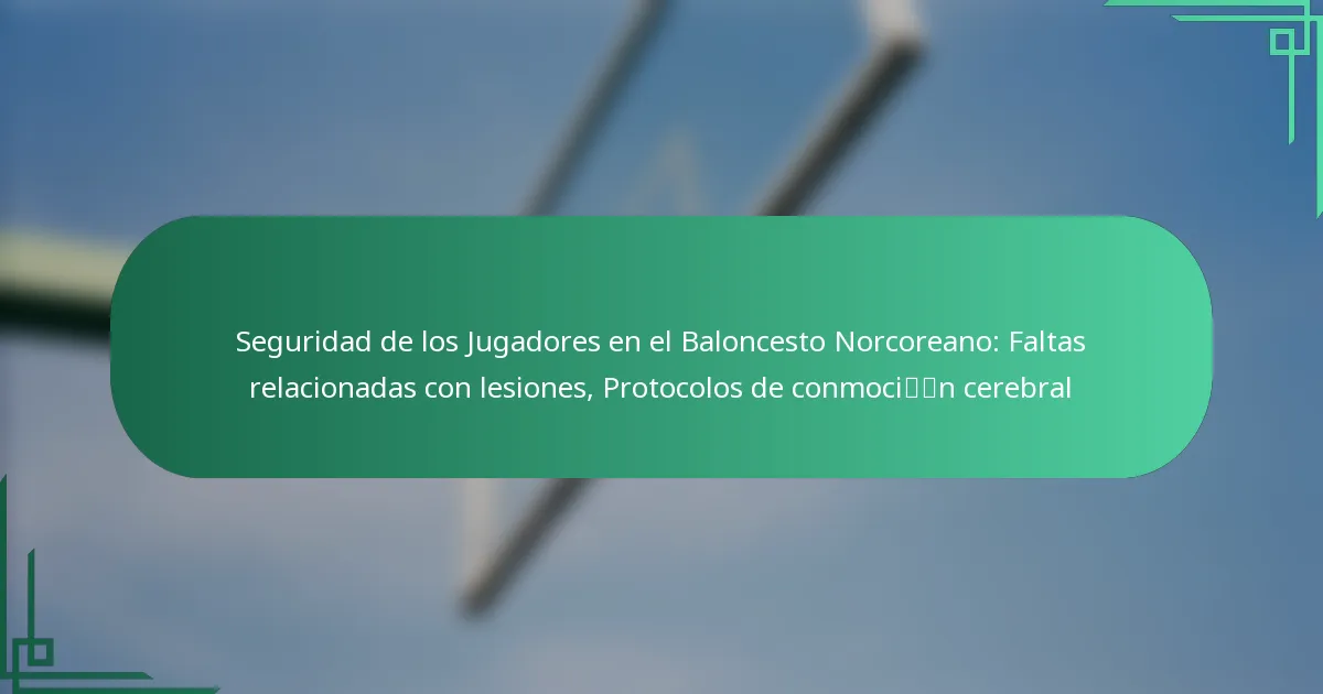 La seguridad de los jugadores en el baloncesto norcoreano es una preocupación crítica, particularmente en lo que respecta a las faltas relacionadas con lesiones y los protocolos de conmoción cerebral. Las faltas relacionadas con lesiones se aplican estrictamente para proteger a los jugadores, mientras que un enfoque estructurado para la gestión de conmociones asegura que los atletas reciban la atención y orientación adecuadas. Sin embargo, las actitudes culturales influenciadas por el orgullo nacional pueden complicar la priorización de la seguridad individual en el deporte.